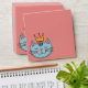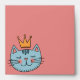 Whimsical blue cat pink envelope with a yellow crown – cute cartoon drawing in doodle art style. Perfect for cat lovers, this playful blue cat illustration features a fun and quirky design.
