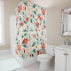 Immerse yourself in a whimsical fusion of colour and pattern with this unique shower curtain showcasing blue leaves and red flowers arranged in a paisley-like style. Accentuated by artistic paint dots on a creamy white background, this pattern exudes a blend of vintage charm and contemporary flair. Ideal for adding a touch of artistic elegance to any space, this design captures the essence of creativity and style.