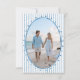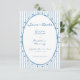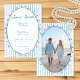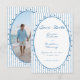 This whimsical wedding save the date card features a soft blue, playful oval frame against a classic blue and white striped background. Add your favorite photo to the back frame. Perfect for a wedding with a preppy or coastal aesthetic, this charming design provides a sweet, hand-painted look for your special celebration. Created by Simply Farmhouse Press.