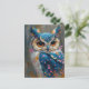 whimsical blue owl paint splatters postcard