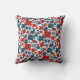 Whimsical Blue, Red and White Flower Pattern Throw Pillow