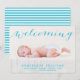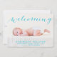 Whimsical Blue Script Photo Birth Announcement