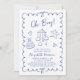 Whimsical Blue Wavy Frame Baby Boy Shower Invitation