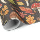 Whimsical Boho Autumn Mushrooms Leaves on Black Wrapping Paper