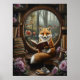 Step into an enchanting woodland library with this whimsical fox art print featuring a curious red fox reading a book by a round window overlooking a magical forest. Surrounded by vintage books, warm cookies, daisies, and a cozy fall view, this fantasy scene is perfect for book lovers, woodland nursery decor, or anyone who adores charming animal illustrations. A beautiful addition to cottagecore homes, cozy reading nooks, and whimsical art collections.