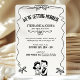 Whimsical Bow Frame with Cartoon Bride and Groom Invitation