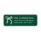 Apportez le style de vacances classique à vos enveloppes avec ces étiquettes d'adresse de retour de Noël personnalisées. Un arc blanc dessiné à la main se distingue par un riche arrière - plan vert, avec son nom de famille et son adresse de retour en lettres blanches. Idéal pour les cartes de Noël, les invitations à des fêtes de fin d'année et la correspondance saisonnière.
