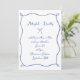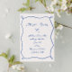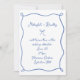 French Blue Whimsical Wedding Invitation, with a hand drawn bow and wavy ribbon frame and handwriting style font.