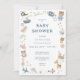Welcome a little one with charm and whimsy. Our enchanting baby shower invitation features hand-drawn, doodle-style watercolor animals and toys playfully surrounding your event details. Soft blues, greens, tans, golds, and browns create a warm, storybook feel on a crisp white background. The back continues the magic with a delightful pattern of the same sweet illustrations. Perfect for celebrating with a touch of whimsy and wonder! Created by Simply Farmhouse Press.