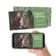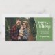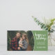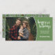 A basic design with a retro look and whimsical branches on the back. The lighter olive green colour can be changed. Happiest holidays is the Christmas saying in a modern script along with a place to add your custom greeting and family signature.
