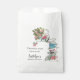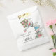 Whimsical bridal shower tea party favour bags feature watercolor illustration of stacked floral teapot and teacups and customizable text.