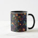A Vibrant colourful whimsical tree pattern design on a mug. Design features a pattern of magical fairytale trees with jewelled flowers and leaves all on a black background. A fun bright design for all.