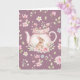 Whimsical Bunny Pink Teapot Floral Easter Card
