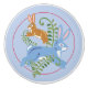 On a light blue background, I've combined my folk art paintings of two cute blue bunny rabbits and ferns and encircled them with a thin red band for a rustic, retro look.. A refreshing yet traditional woodland accent for your kitchen, bathroom, camper, nursery, child's room, crafts or any decor. Available in other background colours and with different animals. Whimsical, original artwork & design by Tuzi Williams.
