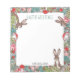 Perfect for anyone who loves bunny rabbits and whimsy, this notepad can be personalized with a name for a custom look! Brown woodland bunnies are scurrying among leaves, ferns and flowers on a grey background. There are also berries and mushrooms for each rabbit to enjoy! Greens, pinks and teal set off the tan animals. Reads, "Easter Greetings" at the top of the white note area and your personaliztion at the bottom - easy to customize using the text template and edit menu. Original artwork and design by Tuzi Williams.