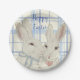 Whimsical Bunny Rabbits Blue Plaid Easter Paper Plate