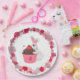 Whimsical Bunny & Strawberry Cupcake Birthday Paper Plate