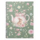 Whimsical Bunny Teapot Floral Spring Notebook. This design features a delightful whimsical bunny nestled within a pink teapot, surrounded by spring blossoms and green foliage. Perfect for journaling, school, work, or as a thoughtful gift.