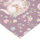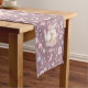 Whimsical Bunny Teapot Spring Floral Pattern Short Table Runner. Whimsical design featuring an adorable bunny nestled inside a delicate pink teapot, surrounded by watercolor flowers and lush green leaves. The soft purple background enhances the gentle beauty of this pattern. Ideal for Easter decor.