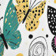 Whimsical butterflies pattern with dots, in purple teal and gold