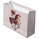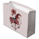 Gift bag with a cute retro style carousel horse. Drawn in Pretty pink colors with fancy flowers.