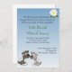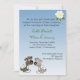 Cute wedding invitation done in a blue gradient background. Cartoon graphics of two brown dogs looking at each other, decorate the bottom left corner and a daisy in the upper left corner. All text is customizable to suit your wedding needs. Adorable dog lovers wedding invitation for the fun loving couple.