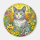 Pretty colourful whimsical cat and flowers yellow floral art. Ai cat and flowers.