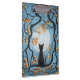 Whimsical Cat in a Tree with Full Moon Painting. A black Cat on a Tree branch with bright yellow and orange flowers, watching the Full Moon with a blue sky Acrylic Painting. Original Modern Whimsical Acrylic Painting, Hand Painted by Donna Leger. All Rights Reserved. ©irony designs