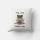 This throw pillow showcases a darkly funny illustration of an angry cat, playing on the classic stereotype that cats are aloof, cold, or even openly hostile toward their owners. It captures the humour of cats as tiny tyrants who rule the house and tolerate humans only on their own terms.
