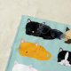 Adorable sleeping cats pattern features a tuxedo or bicolor cat, a grey tabby, an orange tabby, a white cat, a black cat, and a rag doll cat on a mint green background. Perfect for the (crazy) cat people in your life.