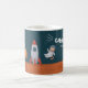 Add a fun touch to your morning coffee with this cute catstronaut coffee mug. Coffee mug features an orange cat flying in a cardboard box in space above the planet Mars. There's also a rocket ship, the planet Earth, satellite, and a flag with a paw print. This adorable mug would be great for anyone who loves cats!