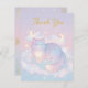 Send a touch of magic and heartfelt gratitude with our enchanting 'Whimsical Celestial Cat Thank You' Card! The front of this delightful card features a gentle, fluffy celestial cat, blissfully floating among soft, dreamy clouds, glowing crescent moons, and delicate twinkling stars. All set against a serene pastel gradient background of lavender, blush pink, and sky blue, creating a truly magical and calming scene. Elegant, hand-lettered 'Thank You' text in a soft gold script graces the top, adding a sophisticated touch.