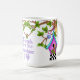 Start your morning off with a positive reminder when you use this gorgeous Whimsical Chequerboard Birdhouse Mug. Whimsical Chequerboard Birdhouse is a charming and colourful illustration created by Debi Payne Designs. This illustration features a whimsical birdhouse of purple and teal accented with multiple doodle flowers sitting above a black and white chequerboard border base. The birdhouse is hanging in a tree with multiple green leaves by a delicate bow tie purple ribbon. Perched on a tree limb and flying in the air are two little Tweedie birds. Accenting the illustration is the hand-lettering positive saying that reads, “Friends are the sunshine of life.”