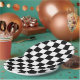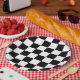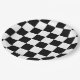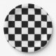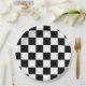 Whimsical chequered black and white chequerboard farmhouse gingham Alice in Wonderland style party paper plate.