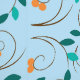 Brighten up your walls with this delightful botanical wallpaper featuring playful vine scrolls adorned with cherries, oranges, and green leaves on a soft sky-blue background. The whimsical nature of the design creates a light and joyful ambiance, making it a lovely choice for kitchens, dining spaces, playrooms, or even a cheerful café.