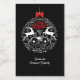 Design includes a pair of deer and a whimsical feel in white on a black background finished off with a red bow and topography. Designed for you by Evco Studio.