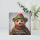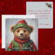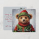 Whimsical Christmas Elf Teddy Bear Painterly Style Holiday Card