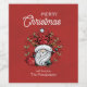 A cute whimsical Christmas gnome on a red background, these personalized wine bottle labels are great to add to holiday gift-giving.