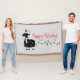 Whimsical black goat illustration with red Santa hat, a string of holiday lights and customizable "Happy Holidays" text