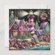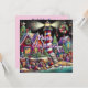 Vibrant colored letters, trees, holly and cancy canes in a cheerful message suitable for a non-religious holiday greeting. I especially liked it on the black background which made the design pop.