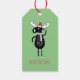 Whimsical modern hand illustrated standing moose with santa hat, scarf, and customizable Merry Christmas text on green background
