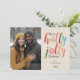 Whimsical Christmas card created using hand painted watercolor ornaments with colourful typography. Personalize the photo and the text for a unique holiday greeting. Original art by Leslie Larson