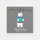 Whimsical modern polar bear illustration with colourful sweater and scarf, a string of holiday lights and customizable "Happy Holidays" text