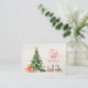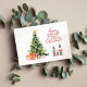 Share the warmth of the season with this charming Christmas card in a vintage watercolor style. The design features a beautifully decorated Christmas tree topped with a golden star, surrounded by festive gifts, and accompanied by whimsical little elves.