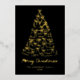 Send modern greetings with this Christmas photo card featuring a whimsical hand-drawn Christmas tree with shimmering gold foil bows on a sleek black background. “Merry Christmas” is displayed in coordinating foil script, with personalization for your family name and year. The back includes a square photo and message, creating a chic and dramatic way to celebrate the season.