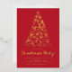 Invite guests to celebrate with this elegant Christmas party invitation featuring a whimsical hand-drawn tree of bows in shimmering gold foil on a red background. “Christmas Party” is displayed in coordinating foil script, with event details printed below. A stylish and festive choice for holiday gatherings.
