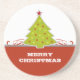 Charming and fun Whimsical Christmas Tree Coaster featuring a bright green decorated Christmas tree, sassy swirls, and a double border in red and light grey. This sweet holiday coaster is a perfect holiday gift for anyone and also a great decorative way to protect your furniture! Easy to customize, simply add the personalized text of your choosing. Click on the "Customize It" button for more personalization options.