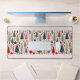 This festive design features a charming forest of whimsical Christmas trees surrounded by cheerful holiday details, including bright red presents, playful ornaments, golden stars, and winter foliage. With a cozy hand-drawn style and a palette of deep greens, soft neutrals, and warm pops of red, the artwork captures the nostalgic joy of the season. Perfect for creating a magical holiday mood, it combines modern folk inspiration with a timeless Christmas spirit, making it a delightful choice for seasonal decorating and gift-giving. AI generated artwork.
