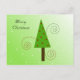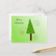 A whimsical Christmas tree in green on a soft green background with snow falling down. Customize as desired.
