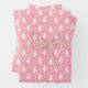 These cute pink and white Christmas wrapping paper sheets, feature a whimsical Christmas tree and snowflake pattern.